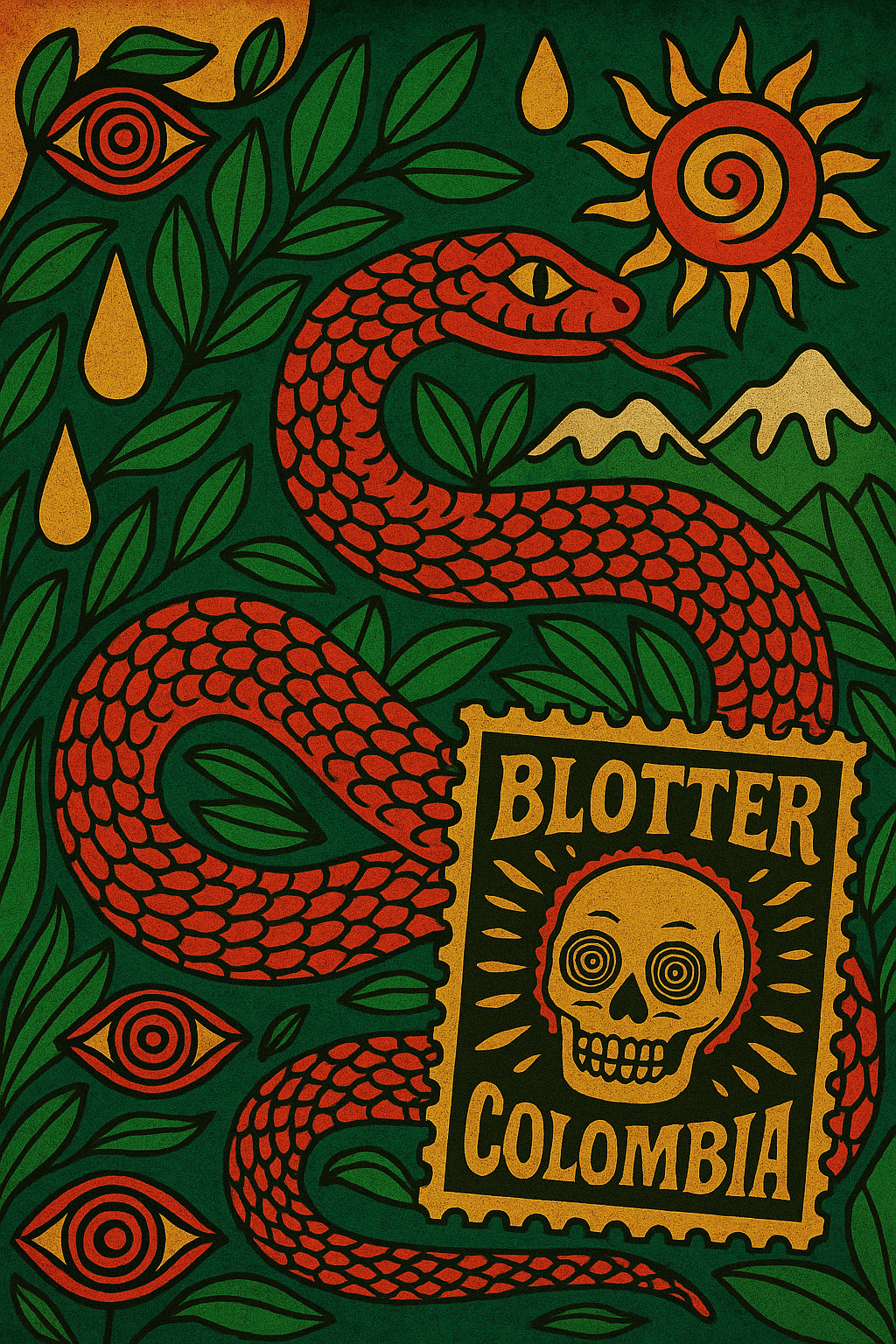 Blotter Colombia nace como un puente entre el arte visual, la historia del LSD y la cultura gráfica latinoamericana. Creemos en el blotter como soporte expandido, como ritual simbólico, como cápsula de tiempo. Esta es nuestra manera de invocar visión.”